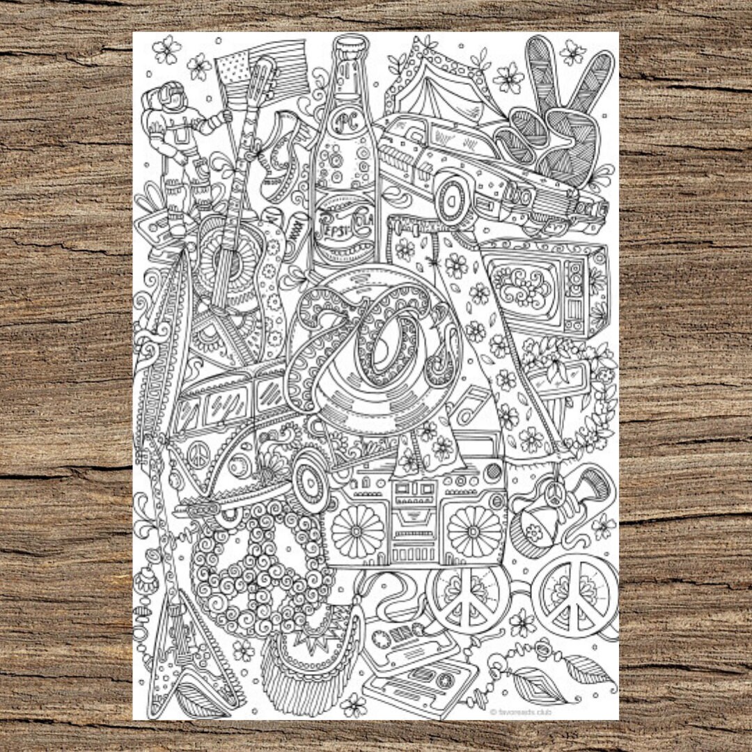 70s Retro Coloring Pages For Adults Coloring Pages For Kids Etsy